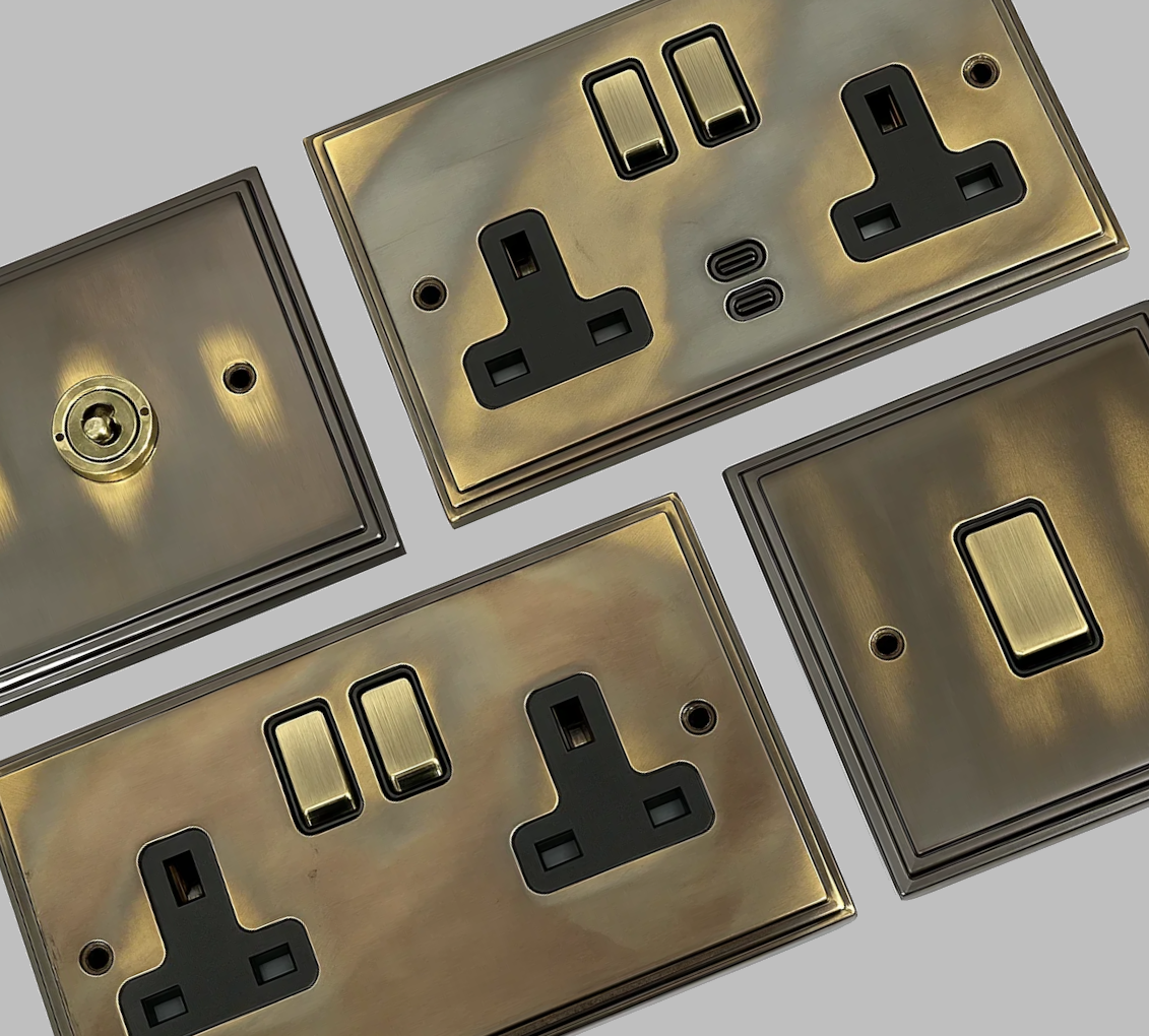 The Victorian Cast range is a solid cast brass plate with an aged finish. It is also lacquered for additional protection. The range is a complete range of sockets, switches, dimmers and toggles. It also has cooker switches, shaver sockets, spurs and data plates in the same finish.