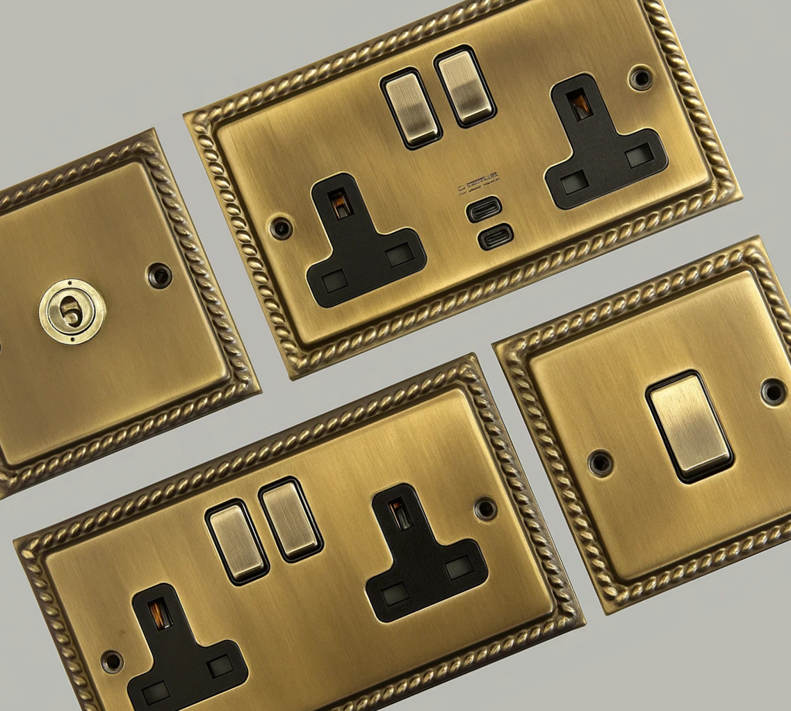Here we have a wide range of Georgian light antique brass sockets and switches.