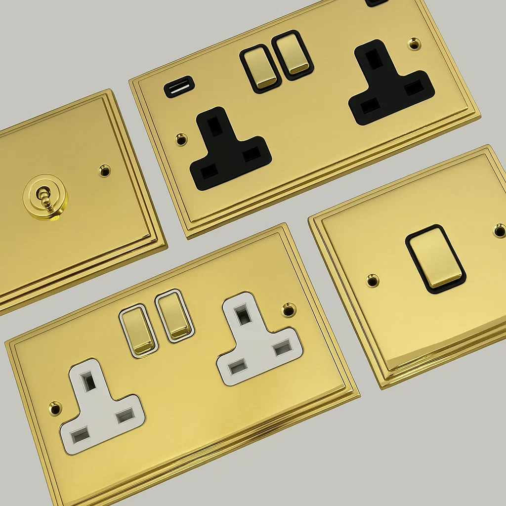 This is a full range of Victorian polished brass sockets and switches available to buy now from our trusted partners.