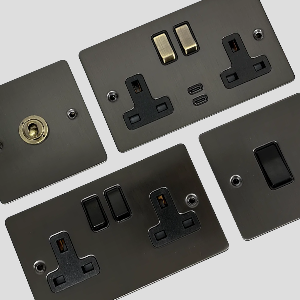 Made from Metal with a traditional Dark bronze finish, these plates are ideal for those looking for a more traditional colour plate with a modern styling. These Black Bronze Sockets and Switches come with both black plastic switches or Black nickel metal switches with black inserts.
