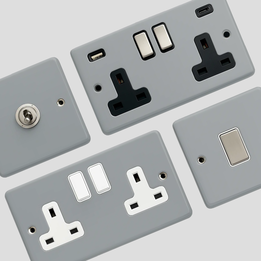 This is our Contour light Grey range of Sockets, Switches, Dimmers and Data Plates.