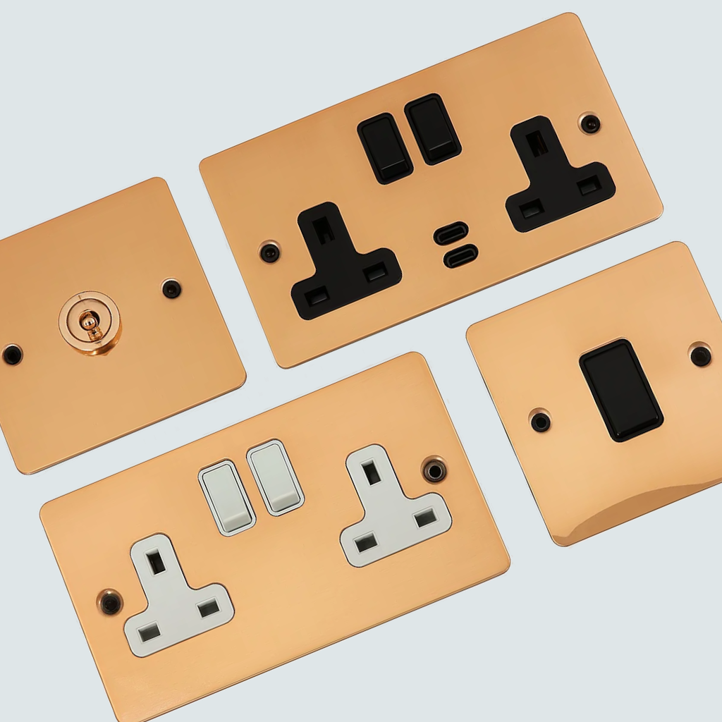 Flat Copper Hand Waxed Double Socket (White Switch)Lead-Time: 4 working days