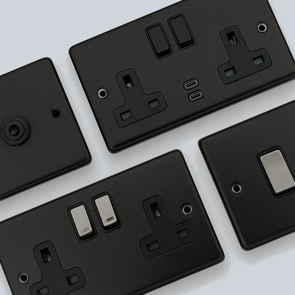 Contour Graphite Double Socket (Black Nickel Switches)Lead-Time: 4 working days