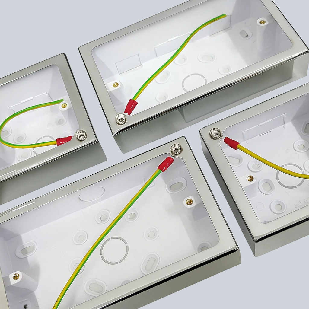 Single and double pattress boxes, perfect for fitting polished chrome sockets and switches on the wall when you do not have back-boxes sunk into the wall.