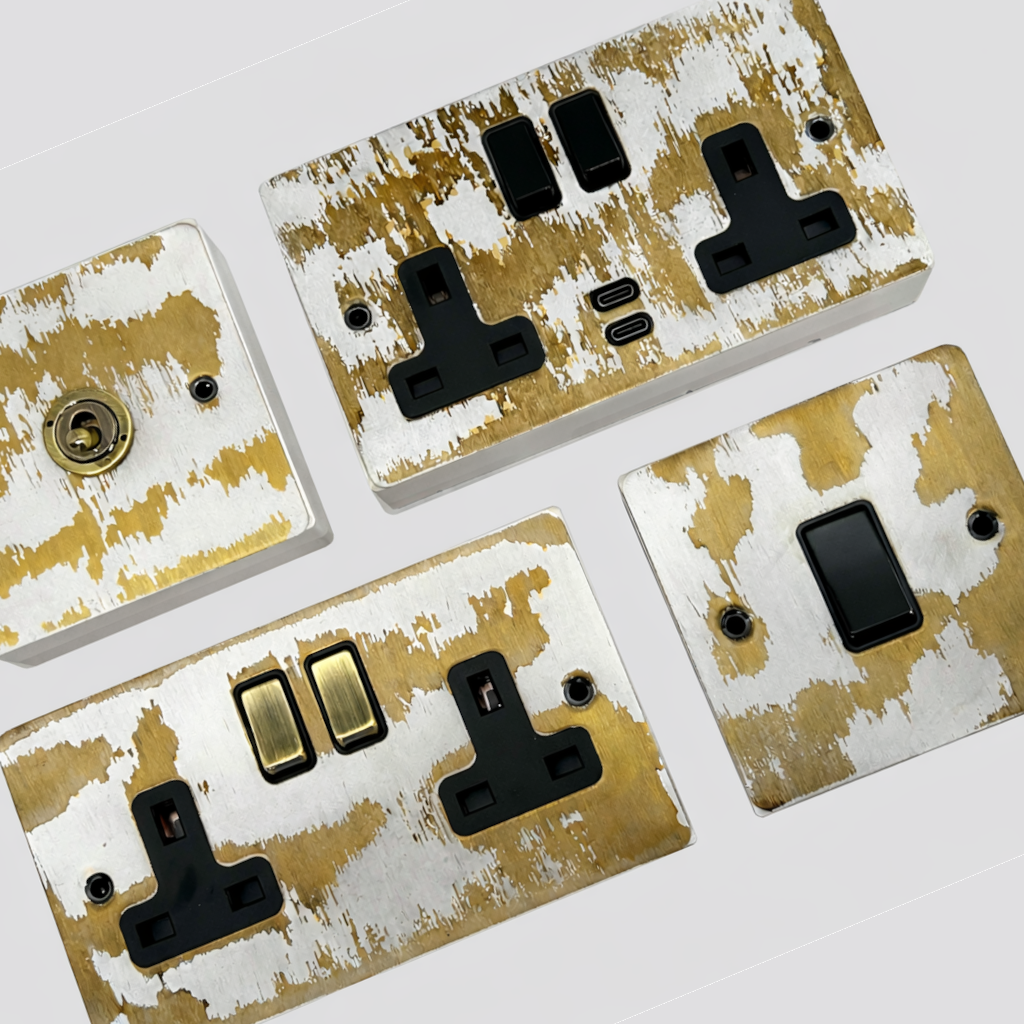 A 1mm thick plate will look great with a straight flat wall. This range has an industrial weathered look and will make a great addition to a cottage. Made with a solid brass plate, finished with a brass colour, a white rustic coat and completed with a lacquered layer for protection.