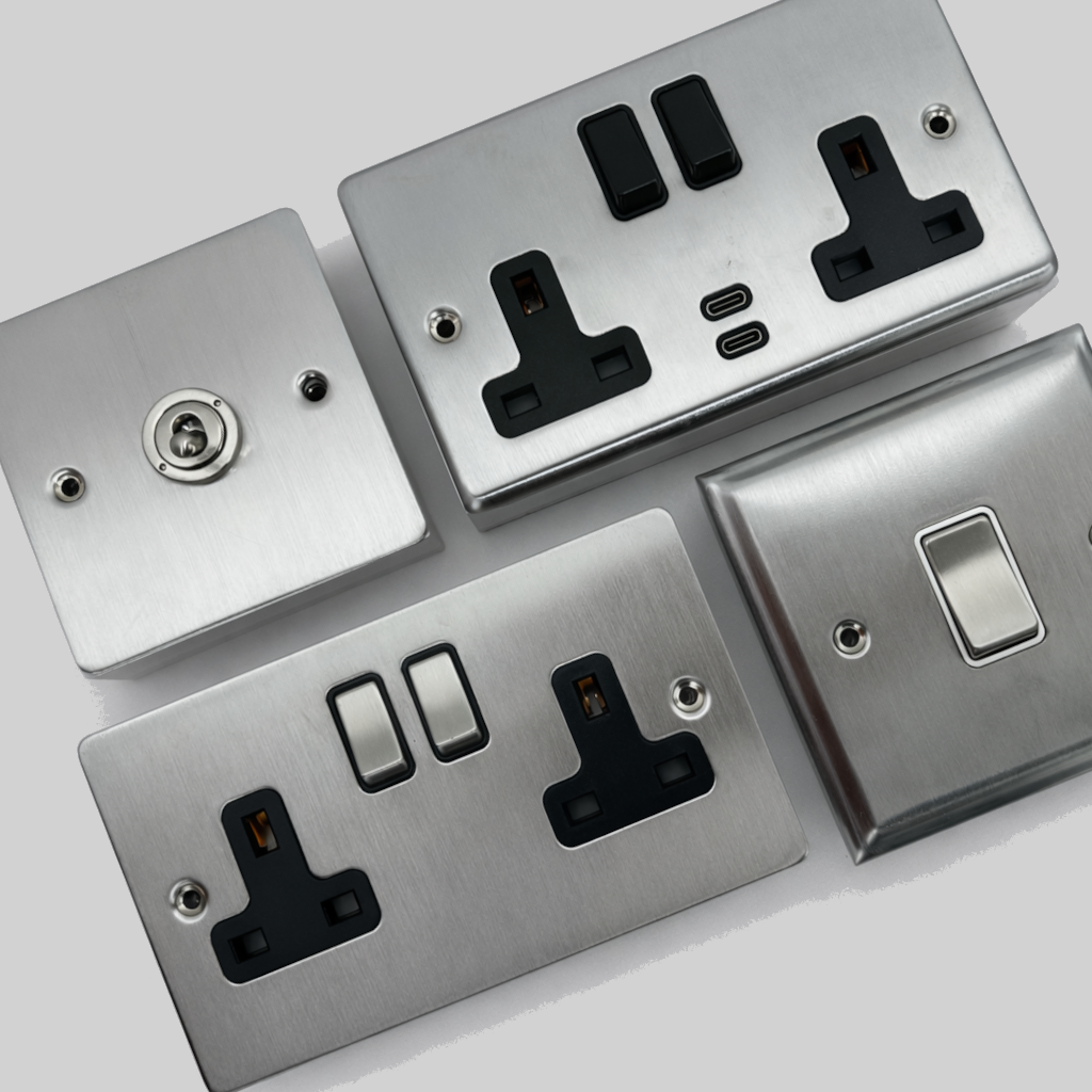 With a wide variety of switch plates available, including USB sockets, cooker sockets, toggles switches and more, with black, white and metal rocker switches to choose from.